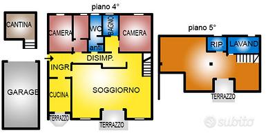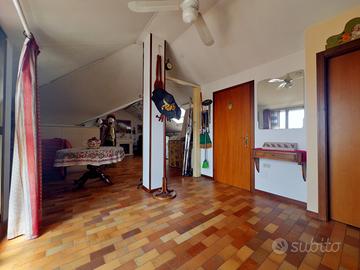 Dal soggiorno con un'ampia scala si accede al piano superiore dove abbiamo un ampio spazio di circa 70 mq. dotato di lucernari, che si può dividere in 2 locali ricavando una 4° camera da letto, un salotto ed un terrazzino abitabile con vista meravigliosa, oltre ad un bagno con doccia ed un ripostiglio.