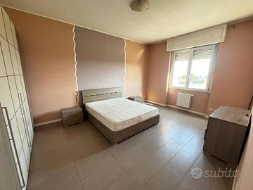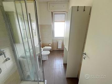 Un comodo disimpegno sfruttato a pieno con armadi a muro, conduce alla zona notte, dove si trova una spaziosa camera matrimoniale, silenziosa e ben illuminata, e un bagno finestrato.