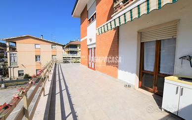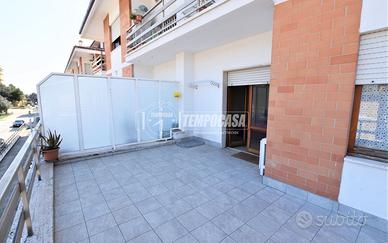 PORTO SAN GIORGIO -ZONA SUD - Appartamento al 1° piano di 130 mq composto da ingresso , cucina, sala da pranzo con uscita sul terrazzo perimetrale di ben 135 mq, ampio soggiorno con uscita sul terrazzo. disimpegno notte , 1 camera singola e 2 camere matrimoniali tutte con uscita sul terrazzo, bagno finestrato con doccia e lavanderia. Grande terrazzo perimetrale di 135 mq, con vaschetta esterna e sviluppato sui lati nord, est ed ovest. INTERNO abitabile ed in buone condizioni, con ambienti ben distribuiti, ampi e caratterizzati da un' ottima luminosità nell'arco di tutta la giornata; impianto elettrico e termico in buone condizioni. ESTERNO in mattoni a faccia vista ,caratterizzato dalla presenza del terrazzo completamente rifatto nel 2015. Zona residenziale ed ottimamente servita. Quattro buoni motivi per scegliere questo immobile: 1) Grande terrazzo - 2) Prezzo - 3) Abitabile da subito - 4) Zona servita. TUTTI I NOSTRI IMMOBILI SONO GESTITI IN ESCLUSIVA VISIONA TUTTE LE NOSTRE PROPOSTE SUL SITO WWW.TEMPOCASAPORTOSANGIORGIO.IT - Classe: F - IPE: 132.36 kWh/mq anno