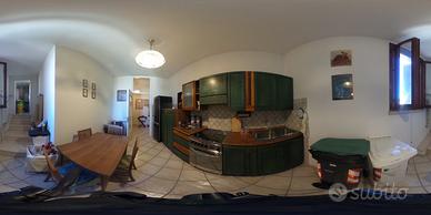 Ingresso, cucina, ripostiglio (locale caldaia), salotto, bagno finestrato con vasca e 2 camere da letto matrimoniali.