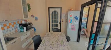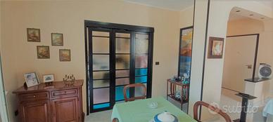 In zona via Torino, vendesi appartamento semi-indipendente in stabile di sole 2 abitazioni. L'immobile, di 5 vani, si divide in: ingresso su salone doppio con balcone ad esposizione angolare, cucina abitabile con balcone, 3 camere da letto di cui 1 con finestra e 2 con balcone, bagno, doppio servizio e ripostiglio. L'appartamento gode di doppia esposizione con balconi. Ottime condizioni generali.