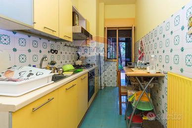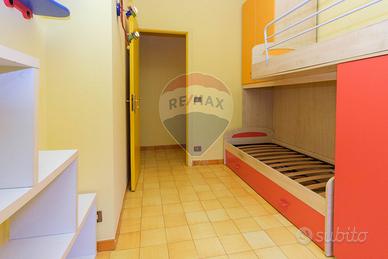 Si accede all'immobile o da un terrazzo privato o dal corpo scala condominiale. L'ingresso alla casa si apre direttamente sull'ampio e luminoso soggiorno, un corridoio disimpegna la cucina, due camere da letto, un ripostiglio e il bagno.