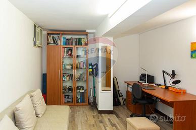 L'appartamento dispone inoltre di un ulteriore vano di 23 mq con accesso esterno, un secondo servizio e diversi ripostigli.