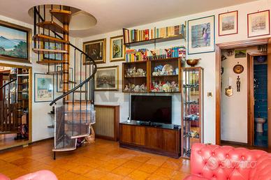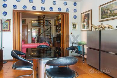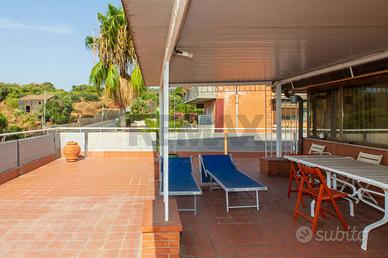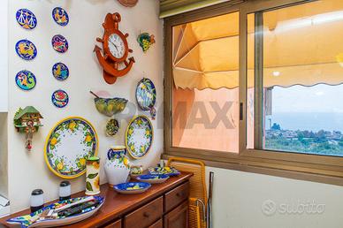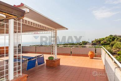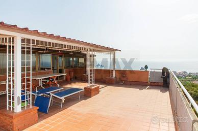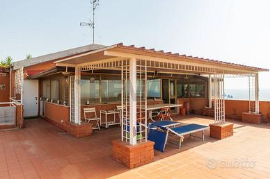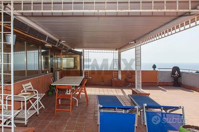 Rif: 30721052-206 Classe energetica: G Se cerchi una terrazza vista mare qui ne abbiamo due! All'interno di un residence dotato di cancello automatico e posto auto proponiamo in vendita un appartamento al secondo e terzo piano di una piccola palazzina senza ascensore. L'ingresso è su un salone doppio con accesso diretto al terrazzo a livello, disimpegnati da un corridoio troviamo la cucina abitabile con lavanderia, bagno e camera da letto matrimoniale. Al piano superiore, con accesso sia dall'appartamento che dal corpo scala, abbiamo una terrazza in parte verandata , di circa 100 mq, che potrebbe diventare un appartamento a parte. E' compresa anche una cantina di 7 mq e c'è la possibilità di acquistare anche un garage di 21 mq. L'APPARTAMENTO NON E'MUTUABILE.