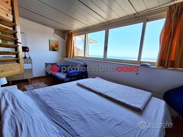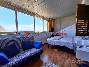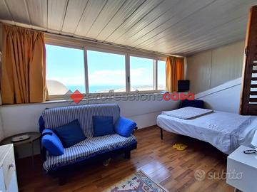 Professionecasa Paesi Etnei propone in vendita ad Aci Castello, nei pressi del President Park Hotel, esattamente in Via Litteri, grazioso appartamento panoramico ristrutturato e arredato, posto al primo ed ultimo piano, ubicato in residence. L'appartamento è composto da ingresso su ampia zona living con angolo cottura e camino, camera da letto e bagno, per una metratura di circa 45 mq. L'immobile è dotato di un climatizzatore, parquet e viene venduto comprensivo di arredamento. Il bilocale gode di una splendida vista mare e nel residence sono presenti posti auto liberi. Classe energetica E.