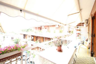 Gli infissi in legno con persiane e vetro semplice offrono un'ottima luminosità e comfort negli ambienti ben disposti caratterizzati da : salone, due camere, cucina abitabile, un bagno, una lavanderia con servizio.