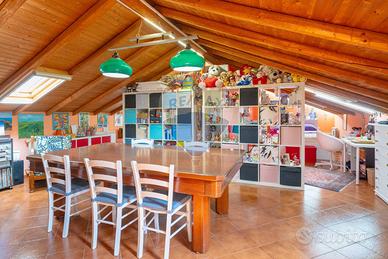 L'immobile situato al secondo piano ( no ascensore ) è composto da ingresso su salone doppio con camino e due affacci balconati, un corridoio disimpegna una cucina abitabile, una camera matrimoniale, bagno con vasca, un ripostiglio ed una lavanderia con servizio e box doccia; tramite una scala interna si accede in mansarda dove troviamo un ampio open space attualmente adibita a camera e studio e zona svago,