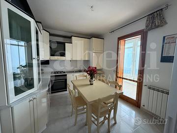 La cucina abitabile, si presenta ariosa e funzionale, mentre la zona notte comprende due camere da letto spaziose e luminose, un bagno di rappresentanza con vasca e una pratica lavanderia con servizio. L'appartamento, completamente arredato, è dotato di climatizzazione, riscaldamento autonomo e infissi con vetro camera, garantendo comfort e risparmio energetico.