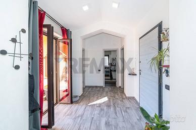 L'appartamento è composto da un ingresso su un comodo disimpegno che conduce alla zona living con camino e doppia esposizione panoramica sul balcone e sul terrazzino, cucina abitabile, due camere finestrate e bagno con doccia.