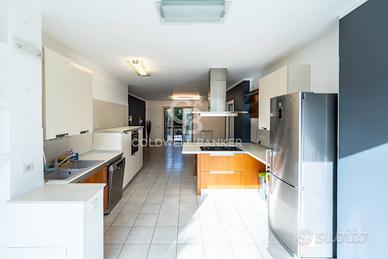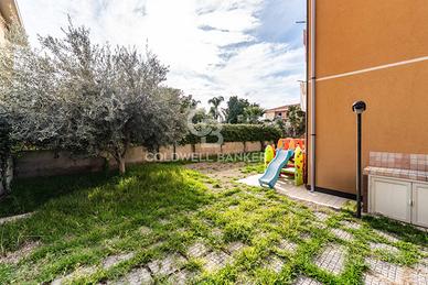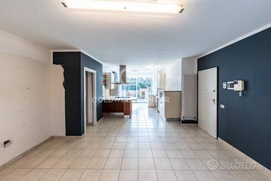 Ingresso su ampia zona living con ambiente unico cucinasoggiorno, dotato di doppio affaccio su terrazzo e giardino privato.Disimpegno che introduce alla zona notte composta da tre comode camere da letto;Un bagno principale;Lavanderia;Ripostiglio.Spazi esterni:
