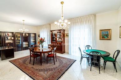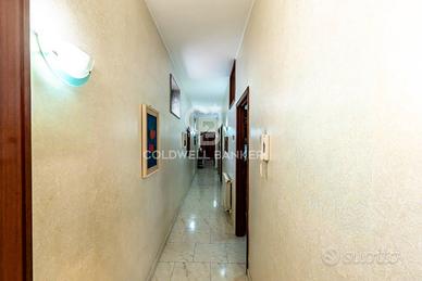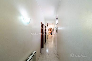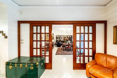 Ingresso con zona living, accogliente e funzionale;Salone doppio, perfetto per zona relax e area pranzo;Cucina abitabile;Due ampie camere da letto, ideali per garantire il massimo confort;Servizio;Lavanderia;Due ripostigli, pratici ed indispensabili per l'organizzazione della casa;Doppio ingresso, soluzione versatile anche per eventuale studio professionale;Ampi balconi, che garantiscono spazio esterno vivibile.La ristrutturazione avvenuta nel 2005 ha modificato la pavimentazione, gli infissi e l'impianto di riscaldamento.