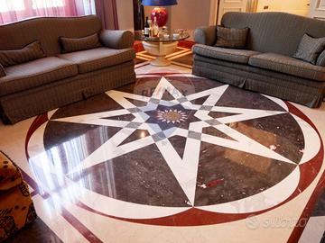 Rif: 41091034-111 Classe energetica: F - EPglnr: 130.20 kWh/m² LA CASA DEI TUOI SOGNI IN VENDITA AD ACQUAVIVA DELLE FONTI IN PIAZZA VITTORIO EMANUELE II IN UNA PALAZZINA D'EPOCA DI DUE APPARTAMENTI!! Appartamento del 1920 - 353 mq circa - 8 vani - Piano primo Nel cuore di Acquaviva delle Fonti, affacciato sulla piazza principale del paese, Piazza Vittorio Emanuele II, la RE/MAX di Bari propone in vendita una rara dimora di prestigio, situata ad un primo piano alto di un prestigiosissimo palazzo storico d'epoca, composto da soli due appartamenti, simbolo di esclusività e riservatezza. ACQUAVIVA DELLE FONTI - UN GIOIELLO PUGLIESE Acquaviva è un centro ricco di storia, cultura e risorse naturali, celebre per la sua acqua sorgiva e per la Cipolla Rossa DOP. Il paese vanta una posizione strategica tra Bari e Matera, un Ospedale di rilievo regionale, scuole, servizi, attività commerciali, una ricca Zona industriale con il casello autostradale a pochi metri, una tradizione gastronomica rinomata ed una comunità vivace. Le sue chiese barocche, palazzi nobiliari, il Teatro Comunale e i suoi eventi culturali ne fanno un luogo ideale dove vivere immersi nella bellezza e nella tranquillità. L'APPARTAMENTO - LUSSO, ARTE ED ARTIGIANALITA' Si accede all'abitazione attraversando un maestoso androne, come nelle residenze nobiliari dun tempo, tramite una grande e comoda scalinata. Lintero appartamento di 340 mq., oltre a spazi esterni di circa 70 mq. complessivi, è stato completamente ristrutturato nel 2006 con materiali di altissimo pregio ed un gusto estetico che fonde una calda eleganza al comfort contemporaneo. La zona giorno è pavimentata in marmi pregiati, che conferiscono subito all'abitazione il suo gusto raffinato. Ogni suo ambiente è decorato con mosaici unici, dei veri tappeti, in Rosso Alicante, Breccia Aurora, Botticino, Verde Ming, Fior di Pesco, Statuario Venato, Giallo Reale. La zona notte con grandi listoni in parquet e disegni...