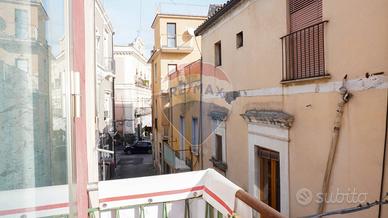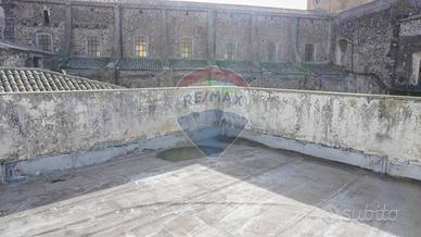 Ad Adrano in pieno centro in zona piazza San Nicolo' Politi, e' precisamente in via de giovanni 8, presentiamo un appartamento al secondo e terzo piano di 226 mq da ristrutturare con garage di 49 mq. Dall'appartamento attraverso le scale interne accediamo su un ingresso su corridoio con ripostiglio, un grande salotto con mobili antichi, piu' bagno, piu' soggiorno,piu' cucina abitabile e con una grande veranda,piu' altro bagno,piu' la zona notte di tre camere da letto. Al terzo piano abbiamo due camere,piu' un bagnetto, cucina e veranda, piu' una terrazza di 50 mq.