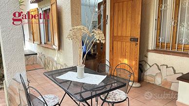 La veranda coperta, ampia e riparata dai venti, rappresenta il vero cuore della casa -- un ambiente ideale per pranzi, cene e momenti di convivialità all'aperto, immersi nella quiete e nel verde del villaggio.