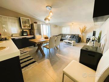 Appartamento ristrutturato e vista mare in zona San Leone a pochi passi dal mare. Posto al secondo piano senza ascensore di un piccolo condominio con uno spazio esterno condominiale per posto moto e bici. Internamente è composto da: ingresso, soggiorno/cucina, 2 camere da letto e bagno. Climatizzato. Vi è la possibilità di lasciare parte dell'arredo.