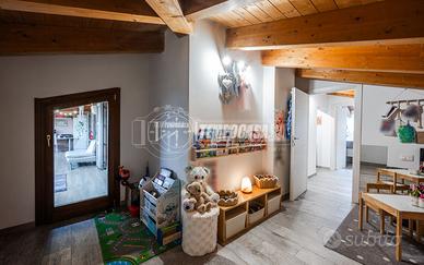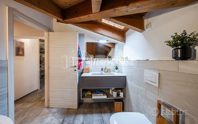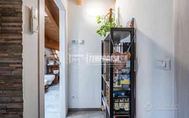 Nel terrazzo troviamo un pergolato chiuso e pavimento disposto anche con spilt. Porta d'ingresso blindata, pavimenti in gress e infissi in legno vetro doppio, presenti all'interno dell'appartamento lucernai automatici con tenda. Travi a vista in legno in tutto l'immobile.
