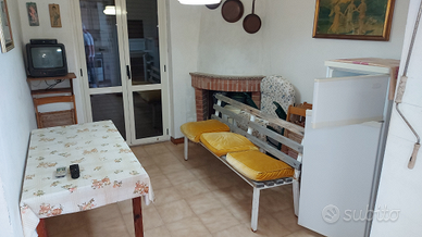 Vendo appartamento arredato a pochi metri dal mare.... Sito al primo ed ultimo piano di una costruzione composta da 4 unità abitative.... Composto da cucina, soggiorno, camera matrimoniale, cameretta, bagno(ristrutturato), balcone e terrazzino.. Dotato di caminetto, 2 armadietti a soffitto, infissi esterni persiane in alluminio ed infissi interni in alluminio e doppio vetro, giardino privato con posto auto coperto, ripostiglio/sottoscala, impianto elettrico a norma, classe energetica G.
