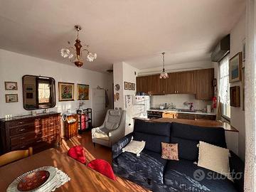 Proponiamo un accogliente bilocale situato al primo piano di una piccola palazzina in zona panoramica e soleggiata. L'appartamento si compone di ingresso, soggiorno, zona cottura attraverso la quale si ha accesso ad un ampio terrazzo, disimpegno, angolo lavanderia, bagno e una camera da letto. Completa la proprietà una spaziosa cantina al piano interrato e un posto auto condominiale ad uso esclusivo. Rimane parte dell'arredo esistente, che aggiunge comodità immediata all'abitazione. C.E.F 163,26 kWh/m2a
