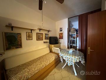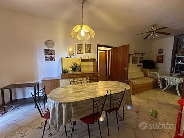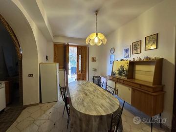 Tramite veranda si accede all'immobile, dove troviamo la zona giorno, con cucina e soggiorno posti su un unico ambiente ed adiacente piccolo ripostiglio.