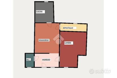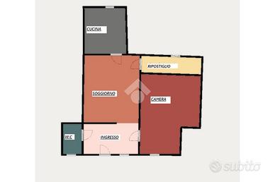 L'accesso all'unità immobiliare è garantito dall'agevole ingresso indipendente, che ci conduce all'interno, costituito da un ampia zona giorno, dalla cucina separata dotata di camino, dal bagno finestrato, da una spaziosa camera matrimoniale e da un ulteriore vano finestrato, tranquillamente adattabile a seconda camera da letto. L'immobile, malgrado non sia di recente costruzione, si trova in buon stato manutentivo e si distingue per la comodità d'accesso e per la vivibilità degli spazi interni. Consigliamo l'acquisto della soluzione per la modica cifra richiesta, che rappresenta una rara opportunità di mercato in relazione alla tipologia e alla metratura.