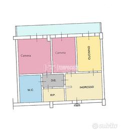 L'immobile è così composto: all'ingresso troviamo un'accogliente zona living con soggiorno, seguita da una cucina abitabile che affaccia su un balcone con vista sul cortile interno del complesso, garantendo tranquillità e riservatezza.