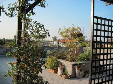 Appartamento al primo piano in palazzina di 5 unità sito in Centovera di San Giorgio Piacentino con 2 camere da letto, cucina, 2 bagni (uno con vasca, il secondo con doccia), soggiorno con divisione (stanza TV), ripostiglio. 3 balconi e grande terrazza esclusiva con vasconi al piano di sopra unita da scala a chiocciola esterna. Garage doppio e grande cantina. Riscaldamento autonomo, doppio condizionatore, allarme, caminetto ad angolo, zanzariere e infissi con doppi vetri. Parzialmente arredato (cabina armadio, libreria, armadi a muro, cucina, scaffali in garage e cantina)