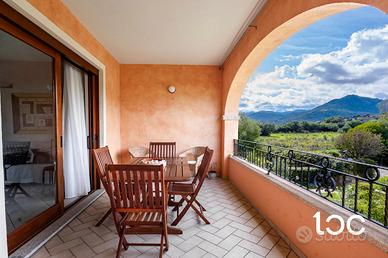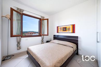 In località Badualga, a pochi minuti dal centro di San Teodoro e dalle rinomate spiagge della zona, proponiamo in vendita un elegante appartamento al primo piano inserito in un contesto residenziale tranquillo e riservato. La proprietà si trova in una posizione collinare che regala scorci suggestivi sul paesaggio circostante, garantendo al tempo stesso una piacevole sensazione di privacy e relax. L'appartamento, parte di un piccolo complesso di recente costruzione con accesso controllato da sbarra, si distingue per le ottime finiture e per gli spazi ben distribuiti. È composto da un luminoso soggiorno con angolo cottura, due camere da letto - una matrimoniale e una doppia - un bagno finestrato, un pratico ripostiglio e una comoda veranda coperta con vista aperta sulle colline. A completare la proprietà troviamo un secondo ripostiglio nel sottoscala, accessibile da una scala esterna ad uso esclusivo, e una corte privata al piano terra dotata di punto acqua, ideale per momenti di relax all'aperto. L'immobile viene venduto completo di arredi, climatizzatori caldo/freddo, posto auto di proprietà ed è pronto per essere abitato sin da subito. Soluzione ideale per chi cerca un'abitazione immersa nella quiete, senza rinunciare alla vicinanza ai principali servizi e al mare cristallino della costa nord-orientale della Sardegna.
