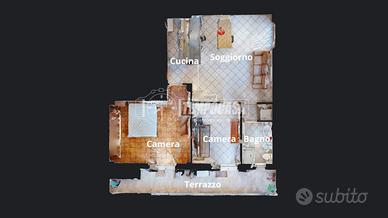 L'immobile è diviso IN BALCONCINO D'INGRESSO, ZONA GIORNO CON ANGOLO COTTURA, CAMERA MATRIMONIALE, CAMERETTA E BAGNO CON DOCCIA.