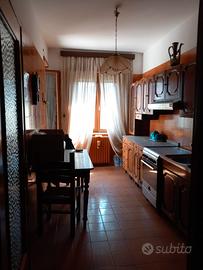 Blera, Via Umberto I° nr. 83, appartamento mq 120 composto da ingresso, cucina, sala, tre camere da letto, due bagni, con infissi con vetrocamera e zanzariere nuove, aria condizionata, termoautonomo, terrazza con relative tende avente accesso dalla cucina, sala e una camera. Annesso all'abitazione vi è un garage mq 26 con apertura elettrica ed accesso pedonale direttamente all'atrio scale, completa la proprietà piccolo giardino e ulteriore parcheggio esterno privato.