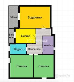 INTERNO: Appartamento di ampie metrature composto da ingresso, soggiorno con balcone, cucina con balcone, disimpegno notte, due camere da letto, un bagno, una lavanderia/ ripostiglio.