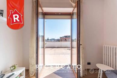 Rif:GB - BR (127834196) - Gruppo Ricercato Immobiliare propone in affitto un elegante trilocale completamente ristrutturato e arredato, situato al terzo ed ultimo piano di uno stabile tranquillo e servito da ascensore, pronto per essere abitato. L'ingresso conduce a un ambiente accogliente che si apre su un luminoso soggiorno e su una cucina abitabile; entrambi gli spazi godono di accesso diretto a una splendida terrazza di circa 150 mq, vero valore aggiunto dell'immobile, ideale per momenti di relax all'aperto o per accogliere ospiti in un contesto riservato e arioso. La zona notte, ben separata, è composta da una camera matrimoniale e una camera singola, entrambe dotate di balcone con affaccio sulla via principale, che assicura un'ottima luminosità durante tutta la giornata. Completa la proprietà un bagno funzionale e ben rifinito. L'appartamento, di circa 95 mq interni oltre agli spazi esterni, è stato ristrutturato circa quattro anni fa e si presenta in eccellenti condizioni. Gli arredi inclusi lo rendono immediatamente abitabile. La soluzione non dispone di box auto. Una proposta ideale per chi è alla ricerca di un'abitazione confortevole, con ampi spazi esterni e una distribuzione interna pratica e ben organizzata.
