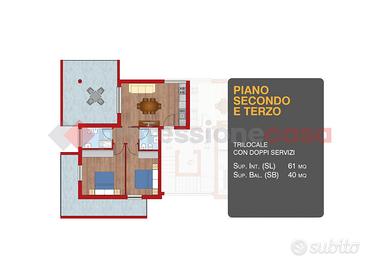 Superficie interna: 61 mq