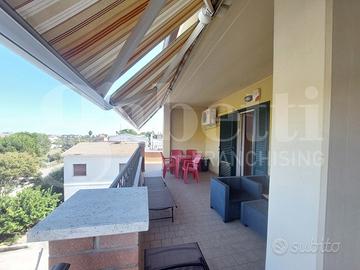 La proprietà vanta due grandi terrazzi abitabili, uno esposto ad Est e uno ad Ovest, perfetti per godersi il sole e l'aria aperta in totale relax. Inoltre, un garage doppio nel seminterrato e due posti auto al piano terra offrono la massima comodità per il parcheggio.