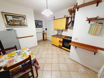 Ingresso su cucina a vista, dalla quale si accede poi ad una stanza da utilizzare sia come soggiorno, oppure come camera aggiuntiva, la zona notte è composta da una camera da letto matrimoniale, una camera doppia, un bagno con doccia finestrato, ampio terrazzo abitabile di mq 32 lato sud, dal quale si ha una parziale vista mare.