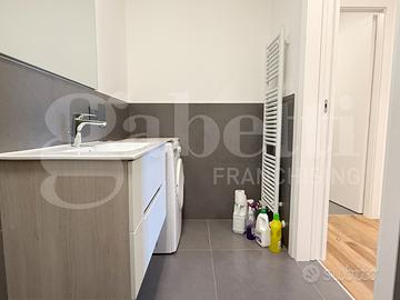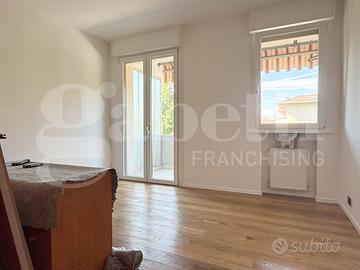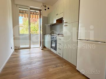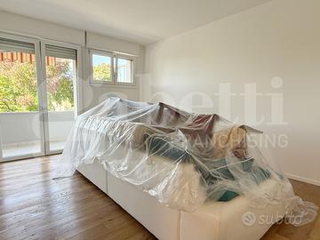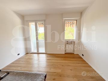 L'immobile che è stato completamente ammodernato con finiture ricercate e pavimento in legno di rovere naturale, si compone di: ingresso, soggiorno con uscita sul terrazzo dalle ampie dimensioni e che fa da cornice a tutta l'abitazione, cucina separata arredata, due camere, di cui una singola ed una matrimoniale e due bagni entrambi ciechi con doccione.