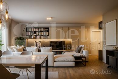 Attico di nuova costruzione in classe A4 e distribuito completamente al piano secondo ed ultimo con un terrazzo che ruota intorno a tutto l'appartamento di oltre 80 mq complessivi.