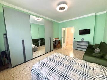 Ingresso su disimpegno, zona pranzo e cucinino funzionale, camera da letto matrimoniale molto grande dove è stato realizzato anche un piccolo soggiorno con divano letto matrimoniale, bagno finestrato con vasca-doccia, ampio armadio a muro, balcone grande e ripostiglio.