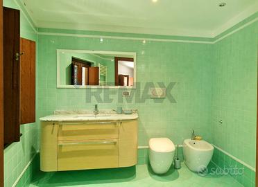 - Bagno con doccia in vetro, piastrelle Cera Sarda, sanitari di design e termoarredo