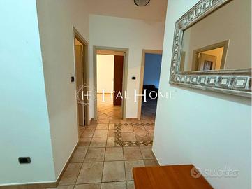 Limmobile si distingue per la generosa metratura e l' distribuzione degli spazi interni. La zona giorno è composta da un ampio ingresso, una cucina separata (completa di tutti gli elettrodomestici) e un grande salone luminoso. La zona notte offre due ampie camere da letto matrimoniali, di cui una dotata di bagno privato, un secondo bagno padronale con vasca e un funzionale ripostiglio. Completano la proprietà due balconi.