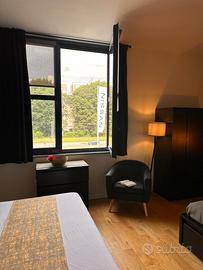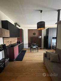 L'alloggio è composto internamente da un unico ambiente suddiviso in: ZONA NOTTE con letto matrimoniale,2 armadi, scrivania e letto singolo, ZONA LIVING con angolo cottura piano a induzione, frigorifero, lavastoviglie, fornetto elettrico, Smart TV, e divano. BAGNO con bidet, box doccia e lavasciuga. Riscaldamento autonomo a pavimento, wi-fi illimitato, split AC. L'appartamento dispone anche di posto auto coperto esclusivo situato al piano interrato.