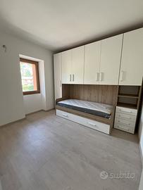 L'appartamento è sito al secondo piano ed è così composto: ingresso con terrazzo, zona giorno con cucina a vista e balcone, bagno con doccia, camera matrimoniale con balcone e camera singola. L'appartamento dispone di piano sottotetto non abitabile La superficie catastale totale è di 112 mq.