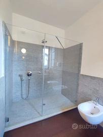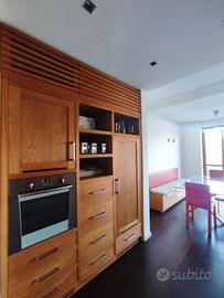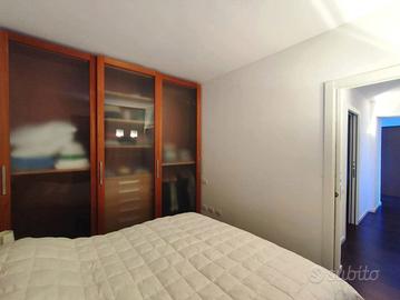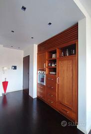 Il trilocale, nel quale troviamo un disimpegno, cucina a vista, soggiorno, corridoio, due camere da letto e bagno finestrato con doccia, è finemente arredato con mobili di alta qualità ed armadi su misura.