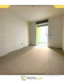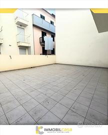 Dall'ingresso accediamo direttamente in un'ampia zona living open space con affaccio su una spaziosa veranda di circa 60 mq e su un comodo balconcino e, sempre in questa zona, troviamo il primo bagno dell'appartamento.