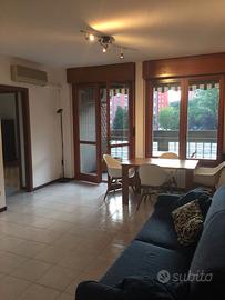 Affitto appartamento ammobiliato 3 locali, doppi servizi, cantina, zona verde e servita da mezzi pubblici, così composto: soggiorno, cucina, 2 camere, 2 bagni, antibagno soppalcato, 2 balconi di cui uno loggiato con tavolo da esterni, aria condizionata. Libero da 1 luglio.