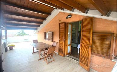 - piano terzo, cucina con sala da pranzo e caminetto con accesso su ampio terrazzo con pergolato in legno vista mare e monti.