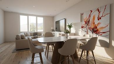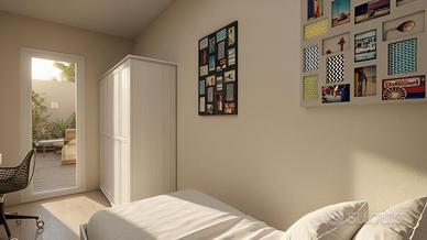 All'ingresso ci accoglie un'ampia zona giorno illuminata da ampie vetrate e da cui si ha accesso al giardino privato nel caso di piano terra, servito dall'antibagno e bagno. Proseguendo nella zona notte abbiamo le camere da letto con cabina armadio e bagno in camera nella stanza padronale. Gli spazi possono ancora essere personalizzati e adattati ad ogni esigenza.
