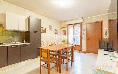 entrando nell'abitazione abbiamo: il soggiorno con angolo cottura di 25 mq, un comodo disimpegno con un armadiatura a muto, un'ampia camera matrimoniale e il bagno;