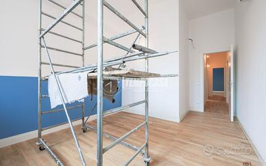 L'immobile, posto al 1 piano recentemente ristrutturato, è composto da ingresso su un ampio disimpegno, a seguire, attraverso il corridoio, si accede ad un'immensa zona giorno di 75 mq, tra angolo cottura e sala, nella quale si trova, attraverso porta finestra e scalinata, l'accesso diretto alla terrazza privata situata al piano superiore.