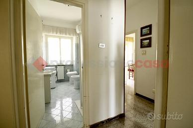 Questo appartamento è posto al secondo piano di uno stabile costituito complessivamente da tre piani e offre una metratura complessiva di 100 mq.