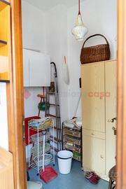 Sulla sinistra, invece, si accede ad una comoda cucina abitabile, provvista altresì di uno spazio utilizzato come magazzino-dispensa.